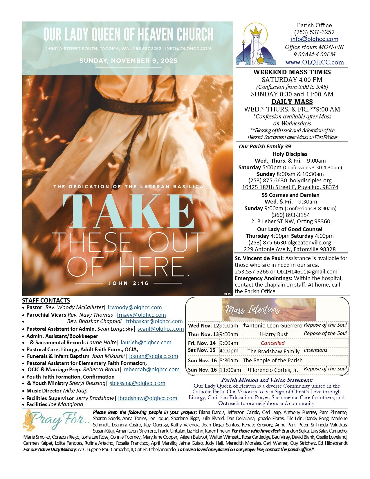 November 9, 2025 - The Dedication of the Lateran Basilica Nov 6 Written By Administrator Click here for PDF Version of the Bulletin . Administrator