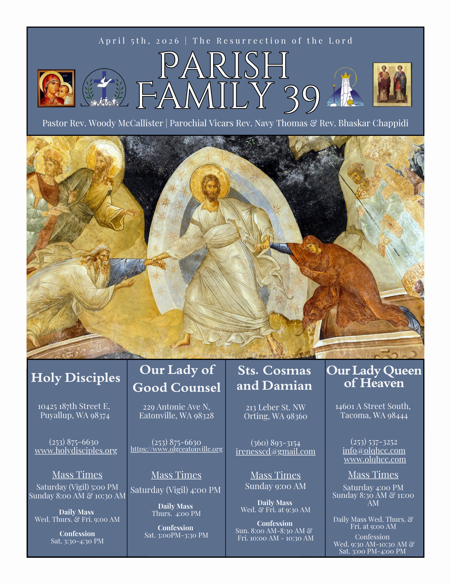 April 5, 2026- The Resurrection of the Lord Mar 31 Written By Administrator Click here for PDF Version of the Bulletin . Administrator