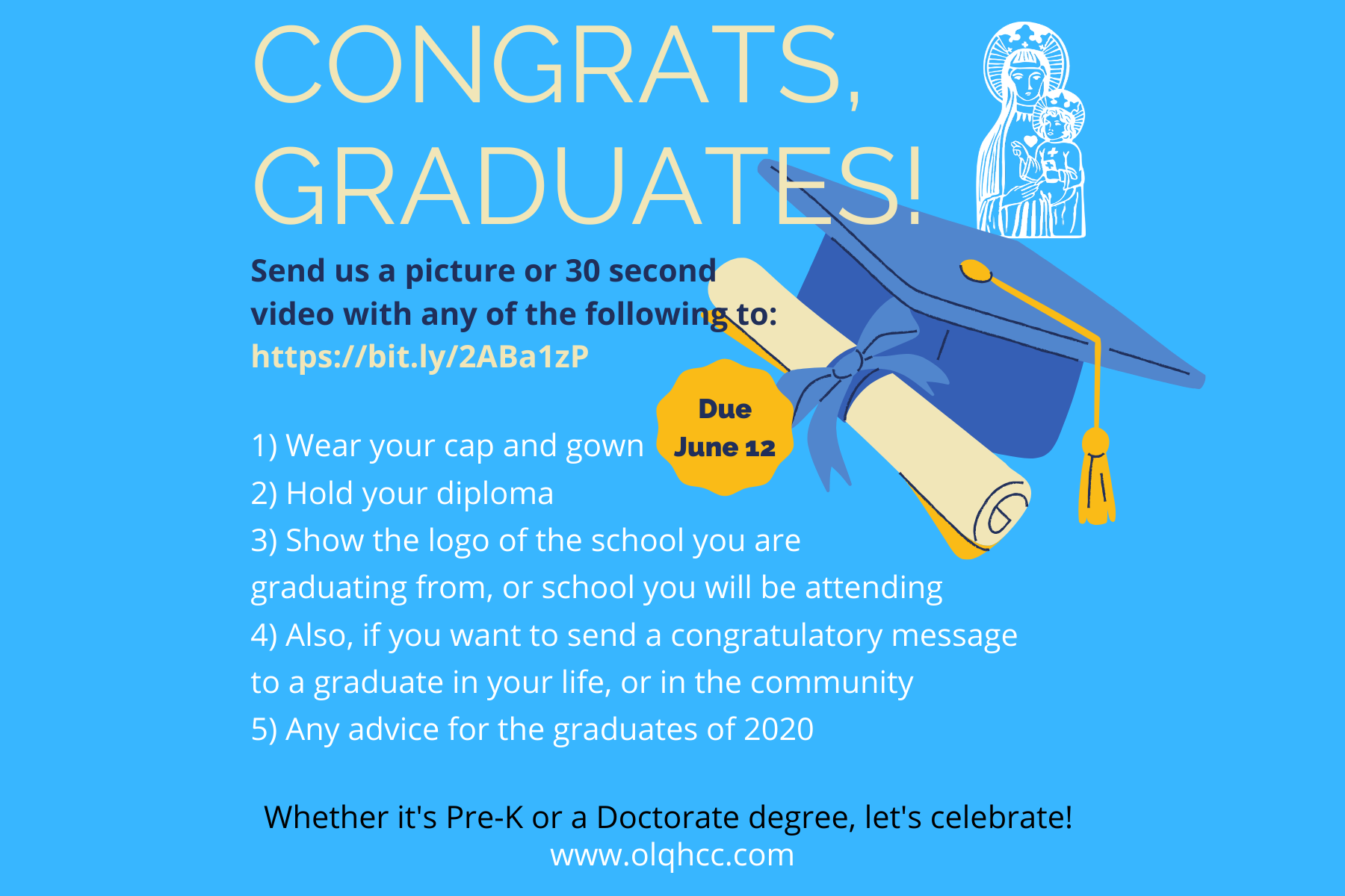 Guest User 12/2/20 Guest User 12/2/20 Simbang Gabi 2020 Schedule Read More Guest User 11/24/20 Guest User 11/24/20 OLQH Newsletter November 22 - 29 Read More Guest User 11/21/20 Guest User 11/21/20 Employment Opportunity Read More Guest User 11/21/20 Guest User 11/21/20 Monthly Food Drive Read More Guest User 11/12/20 Guest User 11/12/20 OLQH Newsletter November 15 - 21 Read More Guest User 11/9/20 Guest User 11/9/20 Resignation Letter to OLQH Read More Guest User 11/3/20 Guest User 11/3/20 Archbishop’s November Letter on Unity Read More Guest User 11/1/20 Guest User 11/1/20 OLQH NEWSLETTER - NOVEMBER Read More Guest User 10/15/20 Guest User 10/15/20 OLQH Newsletter October 11 - 18 Read More Guest User 10/5/20 Guest User 10/5/20 OLQH Newsletter October 4 - 11 Read More Guest User 8/20/20 Guest User 8/20/20 OLQH Pathway to Mary Read More Guest User 7/14/20 Guest User 7/14/20 Prayer to Overcome Racism Read More Guest User 6/3/20 Guest User 6/3/20 Congrats, Graduates! Video Project Read More Guest User 6/2/20 Guest User 6/2/20 A Call to Address Racism in our Hearts and Community: Letter from the Archbishop Read More Guest User 5/21/20 Guest User 5/21/20 Father Vinner’s Cooking Recipes Read More Guest User 5/15/20 Guest User 5/15/20 Financial Status Report: Letter from Deacon Jim Read More Guest User 5/15/20 Guest User 5/15/20 The Grail Prayer Read More Guest User 5/15/20 Guest User 5/15/20 Ministry Highlight: Beloved Little Ones Read More Guest User 5/15/20 Guest User 5/15/20 Pray the Rosary Guide Read More Guest User 5/15/20 Guest User 5/15/20 Reconsecrating to Mary Read More Newer Posts Older Posts